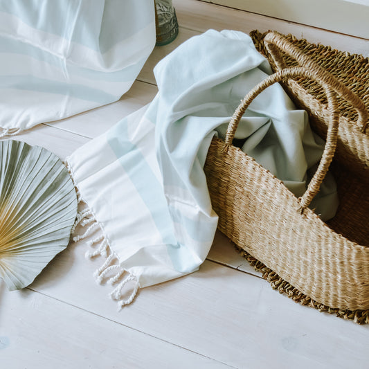 St. Tropez Towel – Light Blue Cotton Bath Sheet with Fringes (180×90 cm)