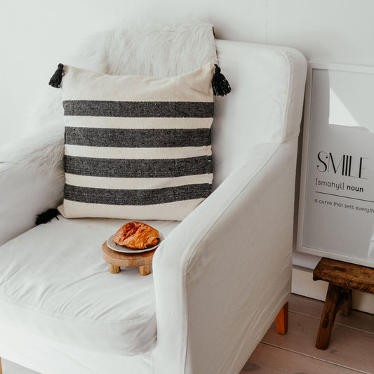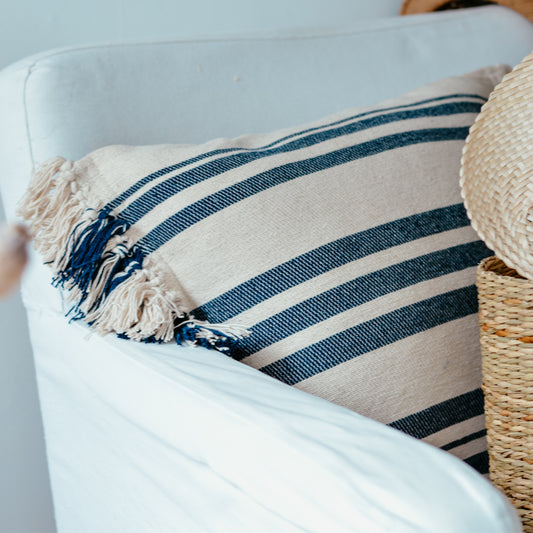 Oslo Cushion – Mustard Striped Cotton Pillow with Inner Cushion (60×30 cm)